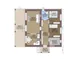 В доме предусмотрено две спальни, что идеально подходит для семейного отдыха или приёма гостей. Наличие террасы добавляет дополнительное пространство для отдыха на свежем воздухе. Хотя в проекте предусмотрена только одна ванная комната, это не мешает наслаждаться комфортом вашего нового дома.